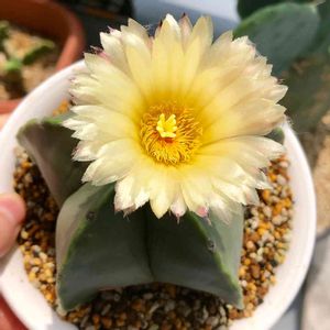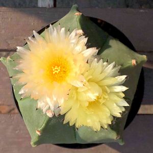 サボテン科 アストロフィツム属 碧方玉と、碧瑠璃鸞鳳玉。😸😸😸😽 碧方玉が先に咲きました…😋