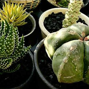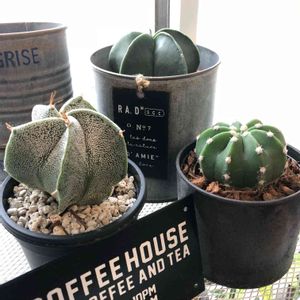 昨日投稿した通販で衝動買いのおまかせミニサボテン20種をご紹介。その五。 左から、 セレウス 岩獅子 アストロフィツム 碧瑠璃鸞鳳玉 ポラスキア 雷神閣 ランポーさんは是非育ててみたい品種でした。 その昔、私のお金や時間が一番自由に使えた頃、私のサボテン育成最盛期だった、ン…ン年前は、そもそもサボテンがあまり売っておらず、今みたいに個人が利用できる通販環境も整ってなくて、入手できる品種には今よりずっと限りがありまして、育てた事なかったので嬉しいです。 兜さんも欲しいなぁ。 雷神閣は、と言うか柱サボテンは総じて、背が高くならないで〜帯化しないで〜。 岩獅子は大きく育てられたら変わった形になるんですね。 私はコロンと丸いのが好きだけど、さて、どうなる事やら。