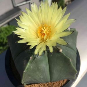 サボテン科 アストロフィツム属 碧瑠璃鸞鳳玉。😸😸 一時、しぼんでしまった花がもう咲き終わったと思いましたが、なんとまた咲きました。😋(笑) 撮影出来たので良かったです。😊