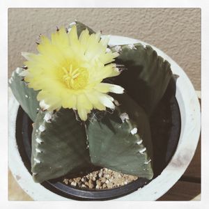 アストロフィツム属 碧瑠璃鸞鳳白玉 へきるりらんぽうしろたま このサボテンはきっと 美しさを追求するあまり 棘を捨て 白粉を塗り 丸玉を脱ぎ均整の取れた 5陵のフォルムをまとったのではと 考えるくらいの美しさ 人はそれに敬意を称し これでもかというくらいの 美しい名前を与えたのでは ないでしょうか 妄想つきませぬ 笑