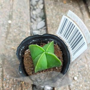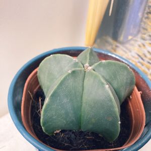 ダイソー産の アストロフィツム 碧瑠璃鸞鳳玉 。上から見ると五角形のよう。