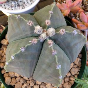 五稜郭……ではありません⭐ 上から見ると星形だからという由来で付けられたアストロフィツムという属名。 なるほど、確かに星形だ😲💫 でも、成長すると真上から見た形はそのままに、横から見るとただの柱サボテンになるとか悲しいんですが😿🪵 このまま成長を止めてくださいと星に願いをしても無駄だろうなー🙏🌠