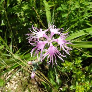高嶺に咲くナデシコ。 花弁は細かく深く裂けていて、手工芸品を思わせるほど。 カワラナデシコもキレイだけど、歩いて歩いて、疲れていたので、キレイさは倍増。