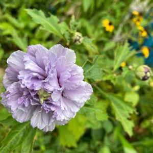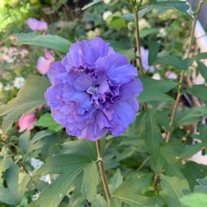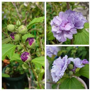 ムクゲ 紫玉💜 やっと咲きました。去年購入時に比べたら、色は薄くて花弁も少なくなりましたが、八重のまま💕 地植えにして環境変えたからかな?中々思う様には行きませんね。