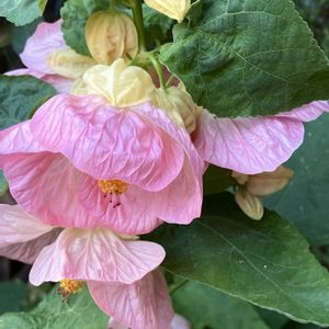 こんにちは 庭のお花です 花友さんにいただいた大きなお花のアブチロン 春から元気に咲いていますよ ロウグチクレマチス ムクゲ 紫玉 ピラミッドアジサイ 大好きな優しいピンク色のサルスベリ 咲きました♡ 見ていただきまして、ありがとうございました