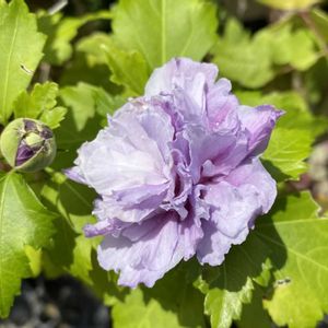 八重咲きムクゲ 紫玉 咲きました。 ツボミがついては黄色くなって落ちてしまい。やっとって感じです。