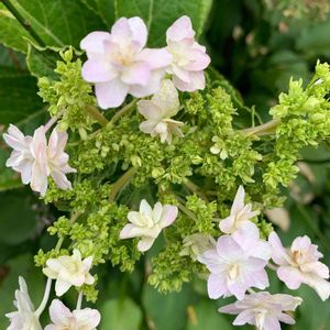 この地方、雨が強く降ってきました! 午前中に買い物を済ませて 庭の鉢を避難させました(^-^) 家の周りの道端で咲いていました💜 アジサイでしょうか❓