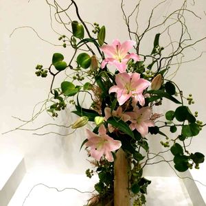 いけばな展へ行きました💕 フラワーアレンジメントも華やかでウキウキしますが、いけばなは枝もの流れ、空間の使い方、花器などしみじみと見惚れてしまいます😍