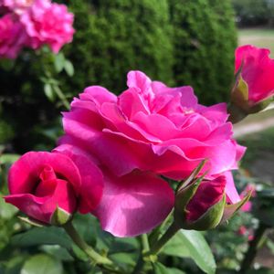 こんにちは。 こちらは鮮やかなピンクの マヌウメイアンという薔薇です〜! 華やかですね〜。 こんな華やかなお花を一度でもいいので いただいてみたいですね〜! 無理だろなぁー^^; いつもの散歩コースにさいてます〜🚶♀️ さ、帰ろうか…