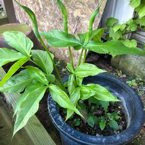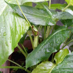 オオハンゲ 黄斑羅紗(甲竜芸) 相変わらずのかっこよさ! この個体は一時的に預かって肥料ガンガンのドーピングしまくりで大きくしてからお返しした株。 赤花の達磨タイプであまり背が高くならない。 兄弟株は赤花と緑花が出ていて銘も2つ付けるそうです。 ちなみに本日兄弟株を頂きました。