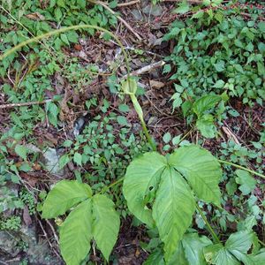 はじめまして✨ の🤳二枚に翻弄されるここ数日 私の脳内は、ひとりミルクボーイ😂 ミツバテンナンショウに会ってみたい… 滝道にて