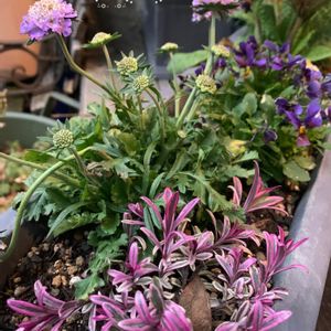 💜スカビオーサ💜 今年お迎えした可愛い子(๑•ᴗ•๑)♡ 寄せ植えに使いましたが全体像は花かんざしが咲いたらupしますね❣️ キュンキュン乙女倶楽部四周年、おめでとうございます。