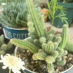 花の時期は終わったけど、ニョロニョロかわいい白檀🌵どんどん増えてね~♨ ところで白檀の鉢からスクスク出てきたこの葉っぱは何者?抜いちゃっていいのかな…