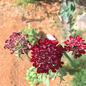 7/1Picと同じ種類のスカビオサの鉢植え💠 地植えの方はチョンパして休んでいただいてるので 秋に向けて こちらのスカビオサん秋色ボルドーで頑張ってもらおうと思います✨