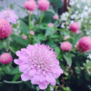 今日のスカビオサアメジストピンクと千日紅🌸ピンクの子達* 今日も暑いですね💦