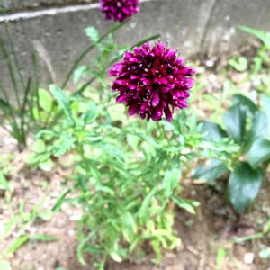 スカビオサブルーベリージゥラート 美味しそうなお名前❤️ 去年秋、苗を購入した時は一度もお花を見ることがなく終わりました😅 なんとか冬越し成功したようで春に新芽が顔を出して、ようやくお花に会えました⭐️⭐️⭐️ 深い赤紫色がステキです❤️