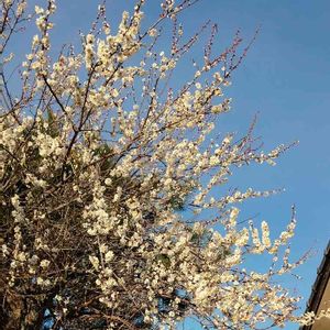 幹が半分なくて樹の皮だけで立っているような、古い梅の木だけど、 季節が来ると、ちゃんと花が咲くのがいいです。