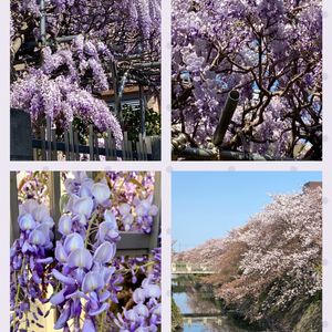 びっくりしました😍 昨日、ちょっとご近所さんへ。 なんと藤の花が💜💜💜 藤の花は 毎年GWあたりに見頃を迎える花 それが、、桜とあまり変わらない時期に このように美しいお姿で💜 塀からはみ出した藤の花は 先端の方はまだ蕾がたくさん💜💜💜 藤の枝の支柱も取り付けられて 素晴らしいです✨ 桜とバトンタッチで、 きっと満開になるのでしょうね✨ 右下は大柏川の桜🌸 藤の家から徒歩5分🎶 真間川との分岐点の先で こちらもまだまだ見応えありました😍 藤の花も桜🌸も日本情緒豊かな花 今日も穏やか一日 お花を愛でて過ごしましょう🥰