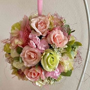 今日も激サム🥶ですが、 お日様の恩恵に預かり、 シーツも洗い干しました👍 朝ゴミ出しの時に見たら ビオラちゃん達必死に踏ん張ってます✊ そうだ!少しでも心ほっこりするように しまってあったアーティフィシャルの フラワーボールを玄関に飾ってみました💝