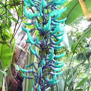 緑の桜を見たフラワーパークの敷地内、温室にあったヒスイカズラです。見る度に、この色の成分は何だろうと気になります😃アントシアニン?(適当)