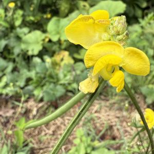 トキリマメ マメ科タンキリマメ属 黄色のマメ科の花、もしやノササゲと期待しましたが 2枚目に豆が出来ています🫛 調べるとトキリマメのようです☘️ トキリマメ タンキリマメ ノササゲ 黄色の花は似ていますが 葉はそれぞれ違っていました☘️ 宝石のような紫の鞘は何処か彼方へ行ってしまいましたが💜 赤い豆も見るのが楽しみです❤️😃🎶 ☘️トキリマメ 頂小葉の先が長く尖る 幅は基部側が最大 葉表は無毛 ☘️タンキリマメ 頂小葉の中央から先の幅が広い 葉表に毛が多く厚みがある ☘️ノササゲ 頂小葉は三角状長卵形 薄く葉裏が白っぽい