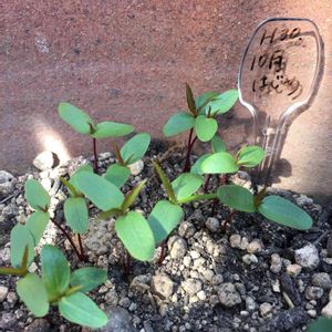 ドライフラワーのペッパーベリーを蒔いたら、芽が出てきました! 花を咲かせて欲しいなぁ♡