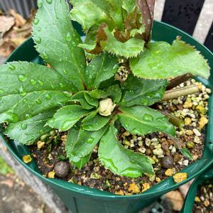 クリスマスローズ氷の薔薇ピコティ なかなか咲かないけど、確実に伸びてる。