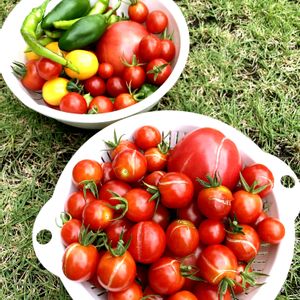 雨が上がったのでトマト🍅を大量収穫☝️ 今回は水割れもなくピカピカ🌟味も甘くて😋みずみずしい😆