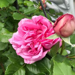 バラ ローズポンパドール& レイニーブルー🌹 元気出そうぜ‼️と言われてるみたいです💦 直射日光の下ではピンク色になってしまうレイニーブルー😅 本当はもうちょっと紫です😄