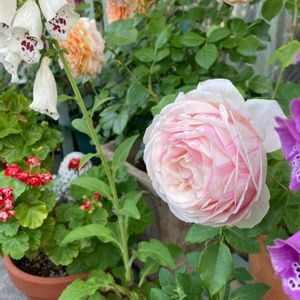 もうちょっとで咲きそうな、オールドローズ“香粉蓮”。 ラ・フランス、オレンジマザーズデイと共に2017年新苗で購入。 花付きは年々良くなっています:-)
