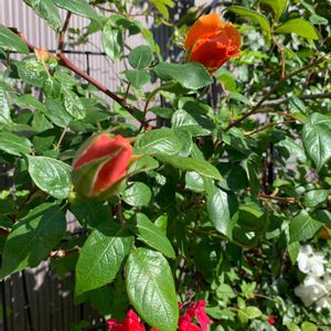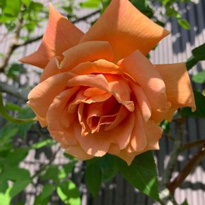 ロイヤルサンセット 3番目に咲いたバラ🌹 花びら少な目で3日位で咲き終わるけど、 1日目のきれいなオレンジ色とお花の形が大好きです💕