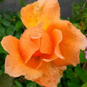 オレンジの君🌹 名前忘れてごめんね 朝までの雨に打たれても美しさ変わらずしずくも滴るいい女😊 今はお日様が🎵 帰ったら咲いてるかな~❣️😊