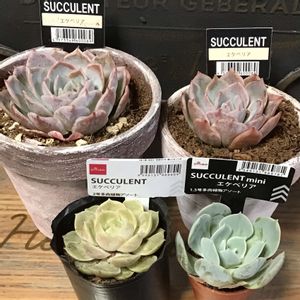 初めて近所のダイソーでエケベリアを発見! 5鉢程こんな感じの子が並んでました。 これが噂の謎ベリアですね^ ^ どなたなのか楽しみ!