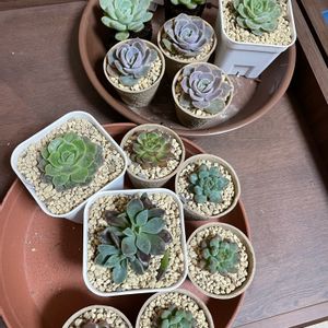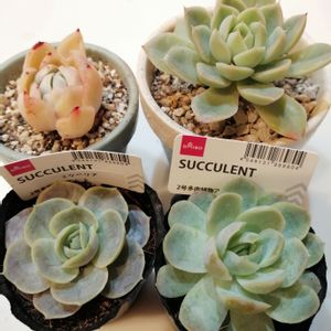 ホムセンでよく見かける均一価格の多肉たち😆 ずらーっと並んでたので気になった子達をお迎えしました😚 名前がわかる方、教えてください︎💕︎ このシリーズちゃんと名札を付けたらもっと売れると思うんだけどなぁ🤔