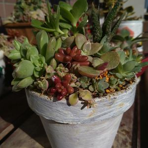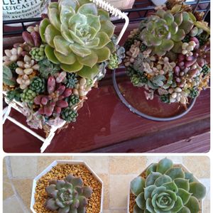 昨日、リエールパパの簡単寄植えユーチューブ見てて♥ 簡単寄植えでも素敵すぎなリエールパパ。 ちまちましなくても素敵だったので真似してみた😉👍 グリネ持ってないので、のびのびセダムを垂らしてみたけど、グリネ欲しいなー✨✨✨ あと名前わからないけど黄色い多肉も欲しい🥺名前知ってる方いませんか? イエローピーノで検索したら黄麗が出てきたけど、思ってる形と違う…