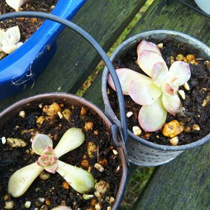 100均多肉が色づいて来ました~💕可愛いなぁ🥰 ↖️七福美尼 株元に子株がぐるりと💕 いっぱい増やしたい~😆 ⬅️謎エケベリア ムーンフェアリー???って言われてる子かな🤗 ↙️ヘラクレス 葉挿しも優秀🥰 ↗️バイオレットクイーン 夏にのびてきたけど、中心がぎゅっとしてきたよ💕 株元に子株も😊 ➡️謎エケベリア あなたはだぁれ?外葉が紫色に色づいてきました😆 ↘️謎エケベリア 似た子をオンスローの名で買われた方が! 我が家に来てまだ2ヶ月なので、外葉は緑だけど、中心から色が変わって来たよ~💕 爪もピンク色に🥰成長が楽しみです😋 さすが100均多肉さん!真夏も雨ざらし放置してたけど、丈夫で優秀な子たちでした🤗 夏の長雨で雨飛ばししなかったから葉に染みが出来ちゃったけど💦 まっいっか😋