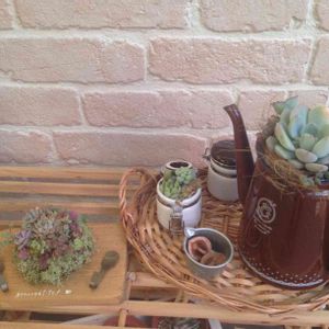 ちょっとお茶でも飲みませんか…♡ 写真撮るのが下手過ぎて多肉ちゃんの可愛さを100パーセントお伝え出来ないのが残念ヽ(;▽;)ノ 本当はカップにも植えたかったのだけど不要なカップが無かったので…今月は、節約頑張る!100均の誘惑に負けない