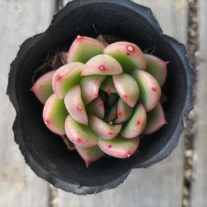 とってもブサイク🤣笑 色はキレイなんだけど、葉が好き勝手な方向に向かってロゼット形状になってくれない😂 名称は無く、韓国苗とだけ書いてあり、半年くらい経ったが…この春から本気出してくれるかな?🙃笑