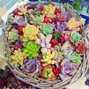 寄せ植え大小7個を仕立て直し ひとつのバスケットにギュギュッと寄せました🌹