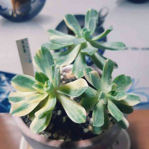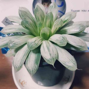 今日の多肉ちゃん💕 去年タニ友から貰って約1年…大きくなったねぇ😃そろそろ植え替えた方がいいかなぁ? この子は錦がいつまでも綺麗だね✨ 上手くいってるつもりでいるけど、単にそういう子なのかな? ハオルチアは相性良いらしい🎵