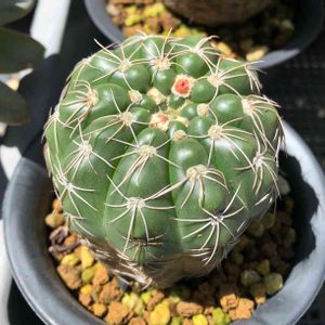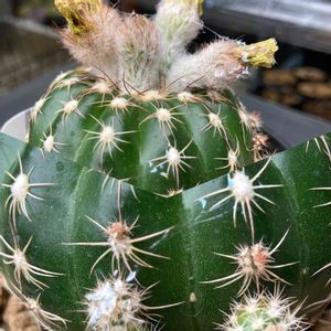 花咲きそう😍 もう10年くらい前に直径3センチくらいの実生小苗(名無し)でうちにやってきて、去年やっと咲いてすみれ丸と判明しました🎶 屋根もない野ざらし放置で時間かかり過ぎ😂 ノトカクタス属っていつの間にか名前変わったんですね🙄