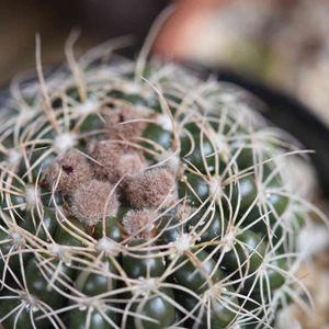 すみれ丸のてっぺんから茶色いもじゃもじゃ。これは蕾。