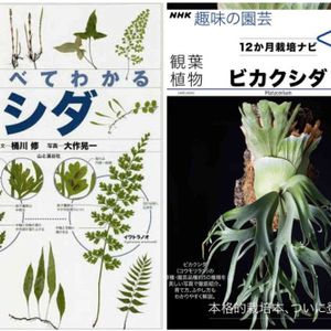 <決心> 左のシダの本は買うつもりですが、1ヶ月で4冊はちょっと使い過ぎなので、何を買うかは決めてないですが、新しい植物は基本導入せず、左のシダの本は購入決定なんですが、「シダ」で検索してたら右のビカクの簡単なチュートリアル本がNHK出版から出てることが判明。皆さんのビカクのpicも楽しみですが、本でも持ってたいなぁと邪念が湧いておりまする。
