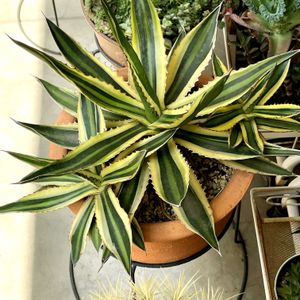 🏷️アガベの日 …なんだね。 ①②③いやはや 子株がさー ついたまま、、、 植え替えしそびれて、、 鉢がぎゅーぎゅー パッツンパッツン ごめんねごめんね〰️。 ④これは 伸び代を見いだしたので 秋に4号から 7号に植え替えた、 わたしのファーストアガベ ⋆✦五色万代⋆✦ やっぱり好きなんだいっ🥰 今日のご飯はなんだい?🍚