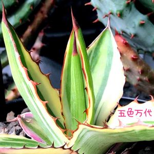 🏷️毎月7日はアガベの日 🏷️勝手に7日は爪エッジ棘の日 参加します💚💅 手前のアガベさん💚 うちに来てくれて2年以上たちます🍀 名なしさんです😅 お子さまがよく出て2株はお嫁に行きました😉今は2つお子さまいます🥰 葉っぱが綺麗で赤い爪の美人さんです😁💕 月の雫さんがフランゾシニーと教えて 下さいました🍀 ありがとうございます(´・ω・)(´_ _)♪💕 左奥の五色万代はわたしがミスって💦葉っぱが取れそうなんです😭
