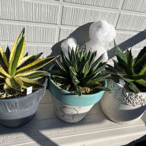 アガベ アスペリーマ ザルセンシス Agave asperrima ssp. zarcensis アガベ 五色万代 Agave lophantha 'Quadricolor' 寒さ🍂もへっちゃらな丈夫なアガベさん達💪