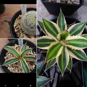 🏷️毎月7日はアガベの日 ということで、わが家のアガベをupさせてください。😄 忘備録さんよりアガベの小苗を2株いただいてから、安価で育てやすそうなものを購入して、いつの間にかアガベが5品種6鉢に増えました❗😃 🏷️が付いてないものが、忘備録さんからいただいたものです。 大きい方は、フィラメントが出てきて素敵❣️ 小さい方も白いラインが出てきました🎵😃🎶 やっぱり姫笹の雪でしょうか。😊 頑張ろう❗日本‼️ 👊✨