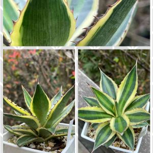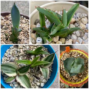 今日は朝から、植え替えをしていました。 (明日からまた出張なので、きちんとお世話しておかないとね👍😊) G Sで知り合った方からアガベを頂き、あっと言う間に10種類になってしまいました。 (めちゃくちゃ嬉し〜い😂) でも、頂いた物を枯らす訳にはいかないのでプレッシャーが………😅 (初心者なのに、高価なアガベを頂いていいのかしら) で、植え替えした、小さな子達紹介しました。元気に大っきくなってね〜🙏🏻 高価な物が増えたので、不在中に取られないかも心配です〜😅