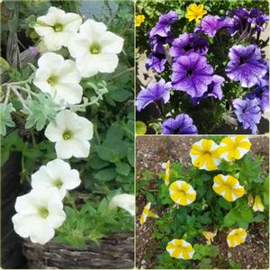 今日のお花 「ペチュニア」 ♡ノーブランドですが白色が✨✨ 💜ノーブランドで ワンコイン‥切り戻してお花が小さく成りました😂 💛レモンスライス カリブラコアですが 良いですか❔