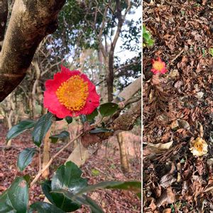 油山で咲いていました✨ 地面に落ちた紅白の椿 2020.1.26